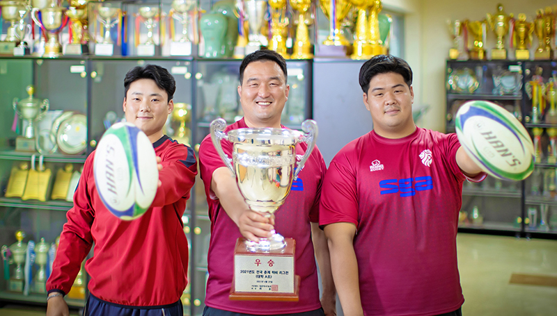 2020년 9월 처음 지도자 생활을 시작한 한상훈 코치는 “이번 리그를 준비하며 잠도 제대로 못 잤다. 매일 밤 놓친 부분은 없는지 계속 확인했다”고 털어놨다. 그는 전승 우승의 비결도 공유했다. “화려한 전술보다는 기본적인 전술에 초점을 맞춰 반복해서 연습했던 것이 주효했다. 경희대 럭비부의 강점은 다른 팀보다 응집력이 월등히 강한 점이다. 이런 강점을 살리기 위해 일방적으로 지시하기보다는 선수단과 소통하며 최적의 전술을 선택했다”고 설명했다.