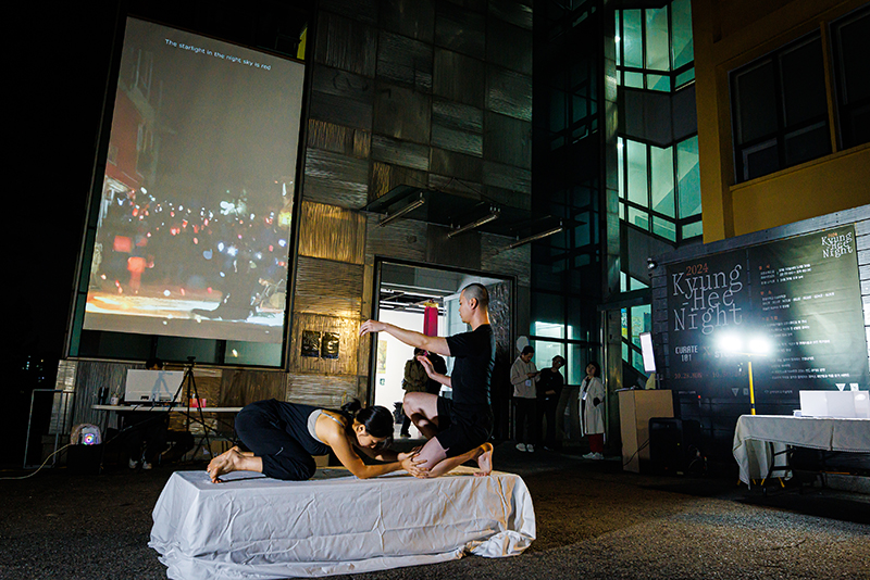마지막 날인 30일 ‘경희나이트’가 열렸다. 전시 참여자와 미술대학 및 경희 구성원을 비롯한 현직 평론가, 큐레이터, 갤러리 관계자 등 외부 예술계 전문가들이 한자리에 모여 소통하는 자리다. 전시 참여자에게는 여러 전문가의 크리틱을 통해 작품세계를 키워나가고, 작가 지망생들에게는 현직자의 네트워킹을 통해 예술계 진출을 위한 조언을 들을 수 있는 기회를 제공하고자 기획됐다. 인공지능을 활용한 퍼포먼스, 밴드 동아리 공연 등의 이벤트가 펼쳐졌다.