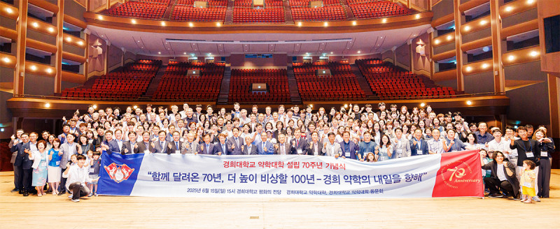 김진상 총장은 축사를 통해 내외 귀빈과 구성원에게 깊은 감사 인사를 전했다. 그는 “약학대학이 쌓아온 지난 70년을 되돌아보는 동시에, 100주년을 향한 담대한 비전을 나누는 자리다”라며 “경희의 창학이념인 ‘학문과 평화’는 교육적 지향을 넘어, 인류 건강의 미래를 위한 근본적 성찰을 담고 있다. 약학대학이 단순히 유능한 약학 전문가를 넘어, 인류 공동체의 건강한 내일을 설계하는 ‘지성의 약’을 길러내는 요람이 되길 기대한다”라며 응원했다.