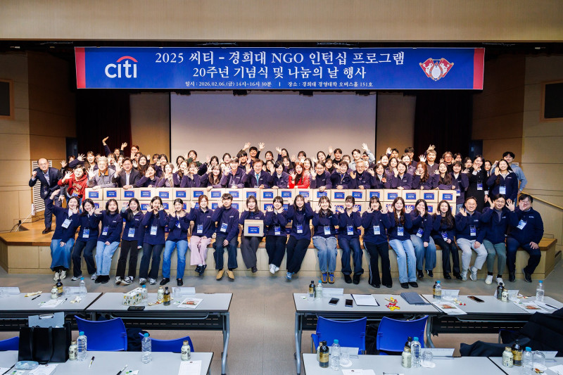 2006년 시작한 ‘씨티-경희대 NGO 인턴십 프로그램’의 20주년 기념식이 2월 6일(금) 오비스홀 151호에서 개최됐다. 지난 20년간 이어온 프로그램의 성과를 공유하고, 대학과 기업, 시민사회가 구축한 파트너십의 의미를 축하하는 자리였다.