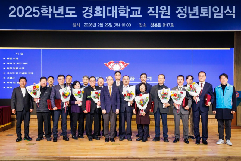 2026.03.122025년 직원 정년 퇴임식이 2월 24일(화), 26일(목) 양 캠퍼스에서 개최됐다. 이번 정년 퇴임식을 통해 총 24명의 직원이 정든 캠퍼스를 떠났다.