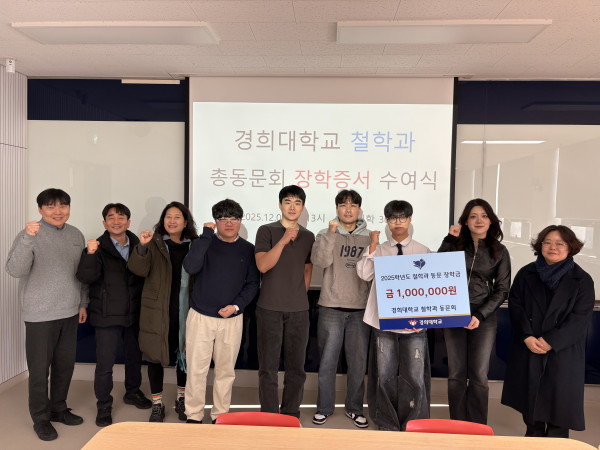 2025학년도 철학과 동문회 장학금 수여식 등록일 25-12-08 10:14 조회수 9 철학과 동문회에서 동문들의 뜻을 모아 철학과 발전과 후배들의 학업 정진을 돕고자 장학기금을 조성, 기탁하였습니다. 철학과 후배들의 학업 정진에 도움이 되고자 하는 동문들의 뜻과 귀한 장학금에 감사드립니다. 이전글경희대학교 경영대학원, ‘2025 경영인의 밤’ 개최 다음글 50년의 영광, 100년의 비전 목록