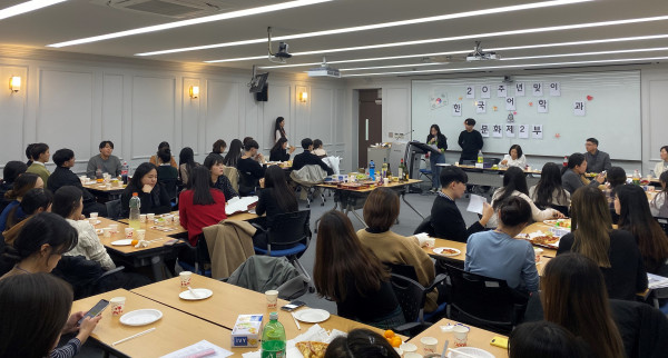 2019년 11월 28일(목), 경희대학교 국제캠퍼스 외국어대학 한누리 소극장 및 외국어대학 306호에서 한국어학과 20주년 홈커밍 데이가 진행되었다. 한국어학과의 20주년을 자축하고 동문과 재학생들의 화합을 위해 개최된 이번 행사는 한국어학과 학과장 김정남교수의 개회사로 시작되었다. 김정남 학과장은 한국어학과는 국제화를 지향하기 위해 만들어진 학과로써 다문화뿐 아니라 여러 언어를 사용하는 환경속에서 한국어가 중심적인 역할을 했으면 좋겠다고 말했다. 개회사가 끝난 후 한국어학과의 동아리 공연이 이어졌다. 가야금동아리 ‘아루마루’를 이어서 락 밴드 동아리 ‘가락’의 공연이 이어졌다. 공연 후에는 행운권 추첨 행사를 통해 다양한 경품으로 모두가 즐길 수 있는자리가 되었다 . 이를 끝으로 1부의 막을 내렸다
