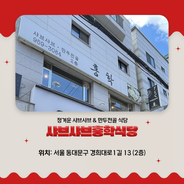 [서울캠퍼스] 홍학 등록일 18-09-21 13:26 조회수 254 업체명 홍학 후원자명 오춘숙 전화번호 02-959-3084 주소 02454 서울 동대문구 경희대로1길 13 이전글반월 다음글 유성관 목록