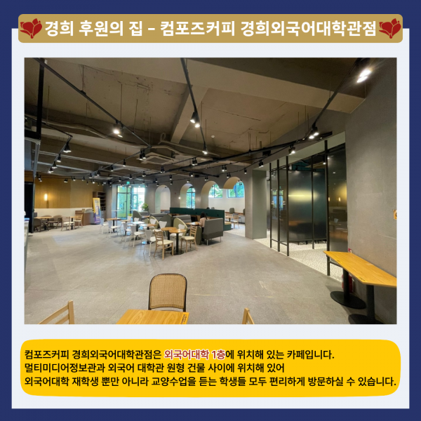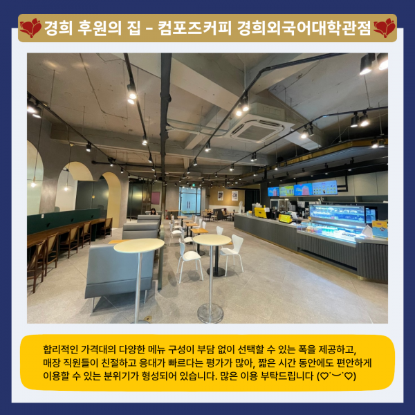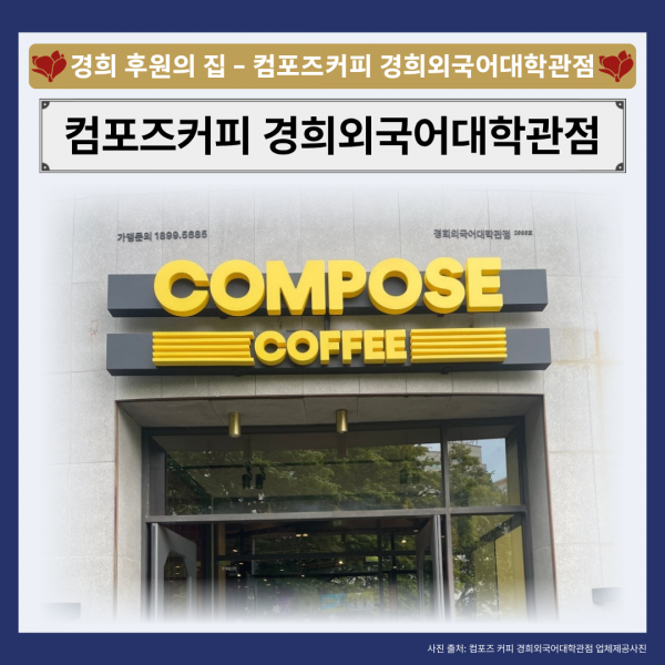 [국제캠퍼스] 컴포즈커피 경희외국어대학관점 등록일 26-03-12 15:39 조회수 34 업체명 컴포즈커피 경희외국어대학관점 후원자명 전화번호 주소 이전글냉삼초등학교 다음글 컴포즈커피 경희전자국제점 목록