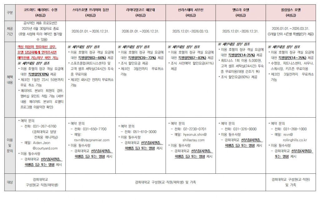 [일반] 경희대학교 약정 체결 호텔&리조트 이용 안내(2026)
