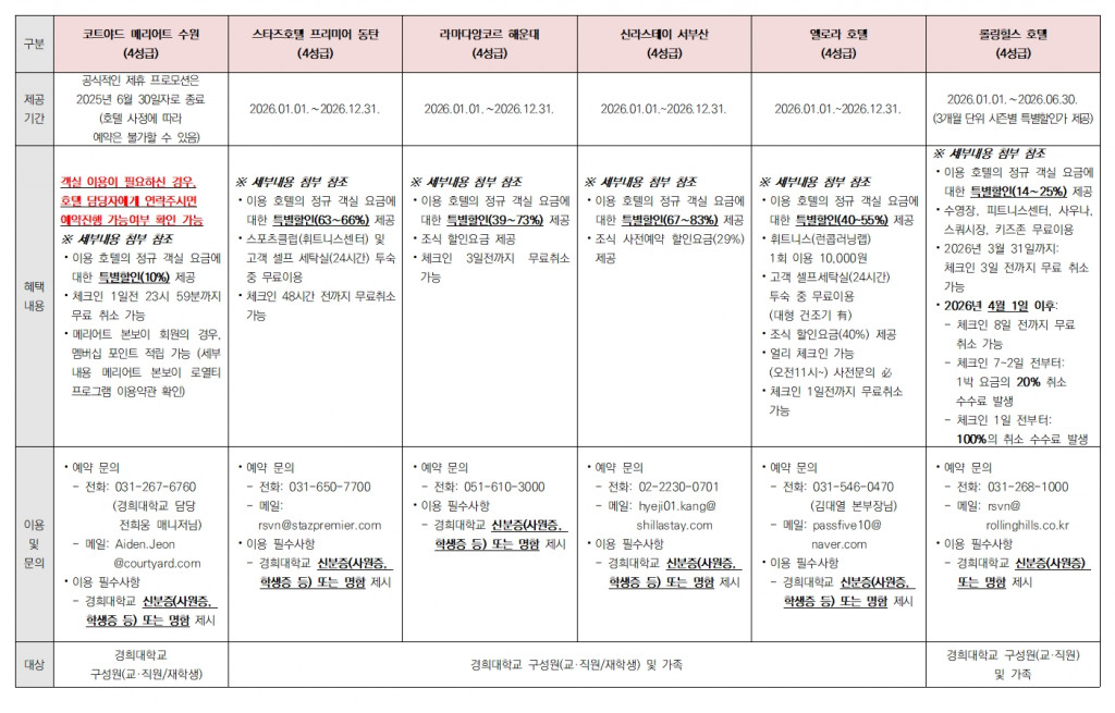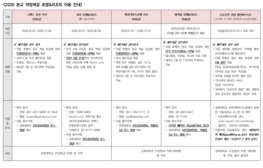 [일반] 경희대학교 약정 체결 호텔&리조트 이용 안내(2026)