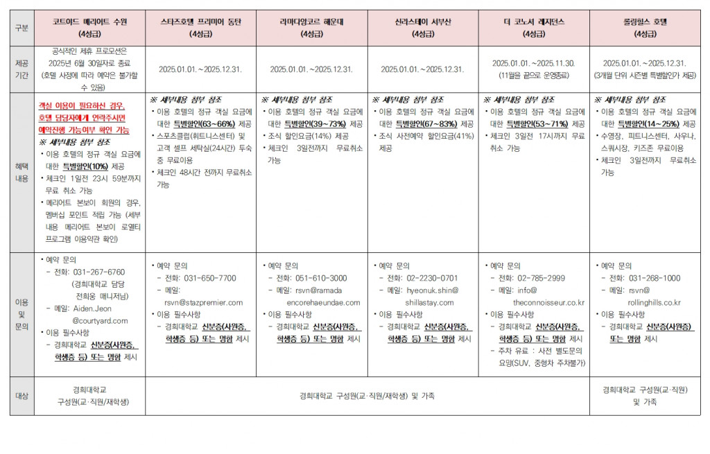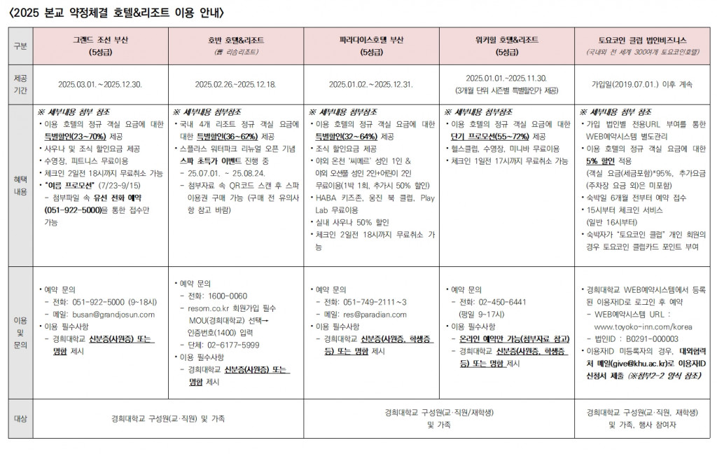 [일반] 경희대학교 약정 체결 호텔&리조트 이용 안내(2025)