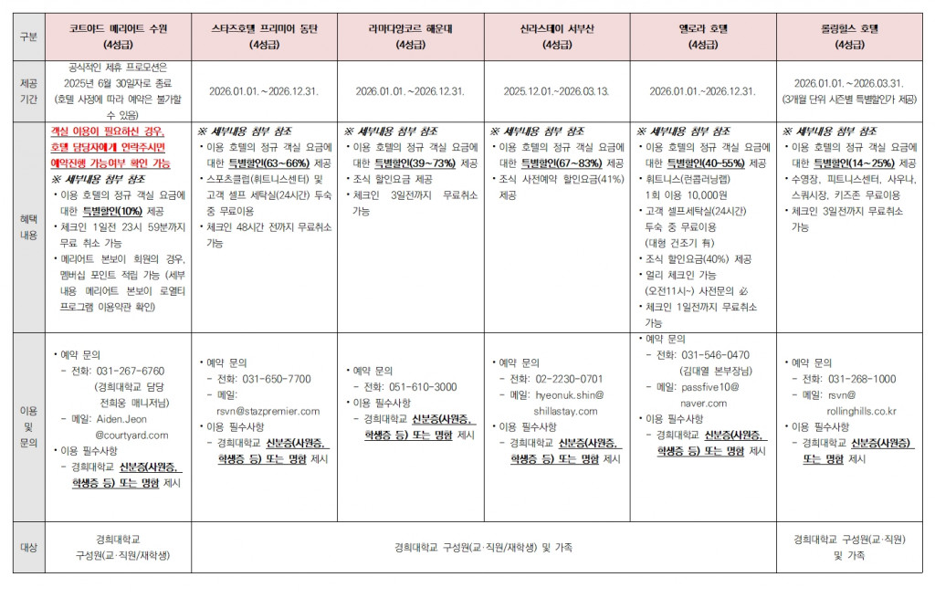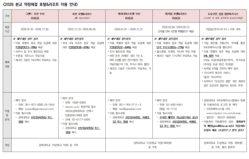 [일반] 경희대학교 약정 체결 호텔&리조트 이용 안내(2026)