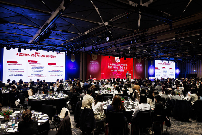 호텔관광대학 설립 50주년 기념행사가 11월 24일(월) 개최됐다. 호텔관광대학은 1975년 설립된 이후로 대한민국 관광산업 발전을 이끌었다. 세계적 수준의 학문적 성취도 이뤘다. 호텔관광 분야는 QS 학문 분야 평가에서 세계 42위, 상하이대학평가 세계 17위·국내 1위를 기록하며 그 명성을 이어가고 있다.