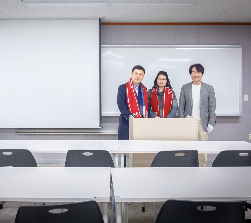 기부식 이후에는 호텔관광대학 303호에서 현판식이 진행됐다. 강의실은 ‘김현태 강의실’로 불리게 됐다. 김 동문은 경희를 응원한 고액 기부자를 대상으로 하는 최고의 예우 프로그램인 매그놀리아 아너스클럽 위원으로도 위촉됐다.